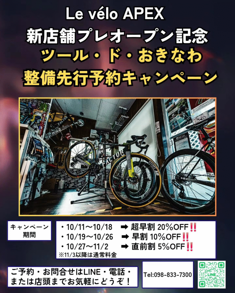ロードバイク整備エリアのみ、10月25日(土)よりプレオープン営業いたします。