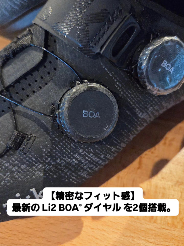 最新の Li2 BOA® ダイヤル を2個搭載。足の甲から土踏まずまで、ミリ単位で自分の足に合わせた締め付けが可能です。