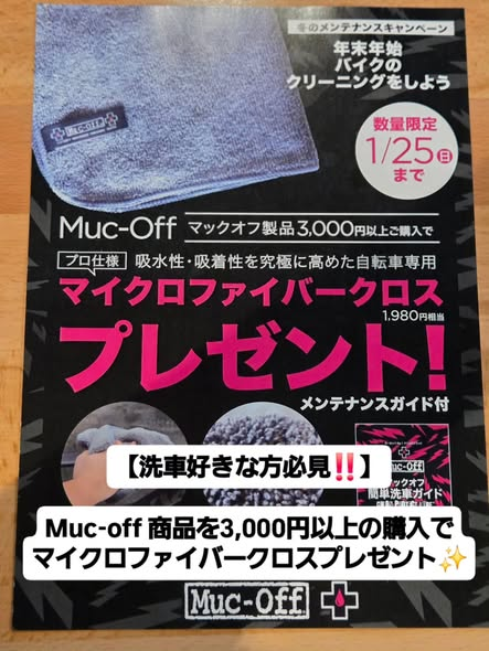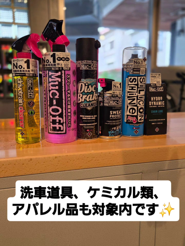 ​期間中、店頭にて Muc-Off製品を3,000円(税込)以上 お買い上げの方に、