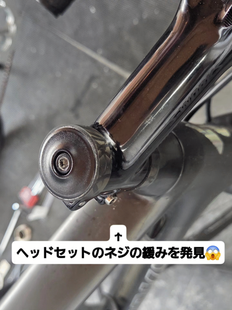 入念にチェックした結果、ヘッドパーツの緩みやディスクブレーキローターのロックリングの緩みを発見!![]()