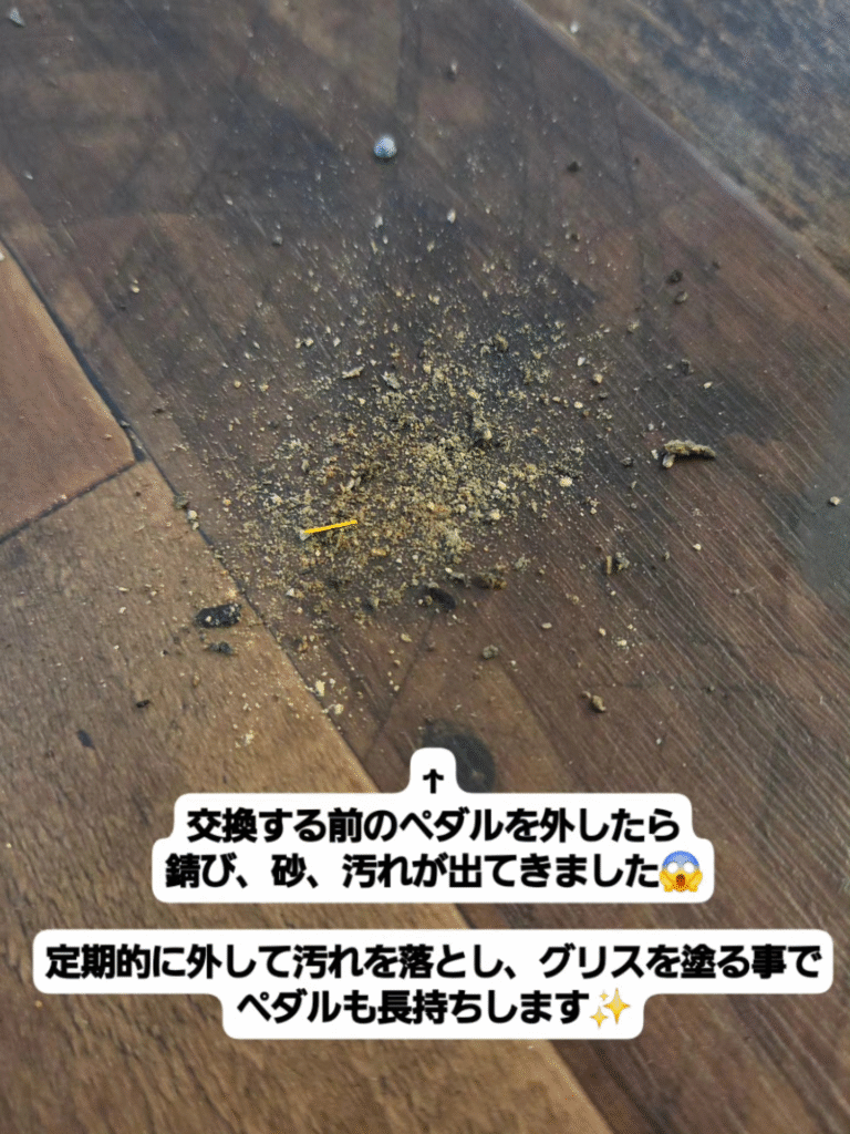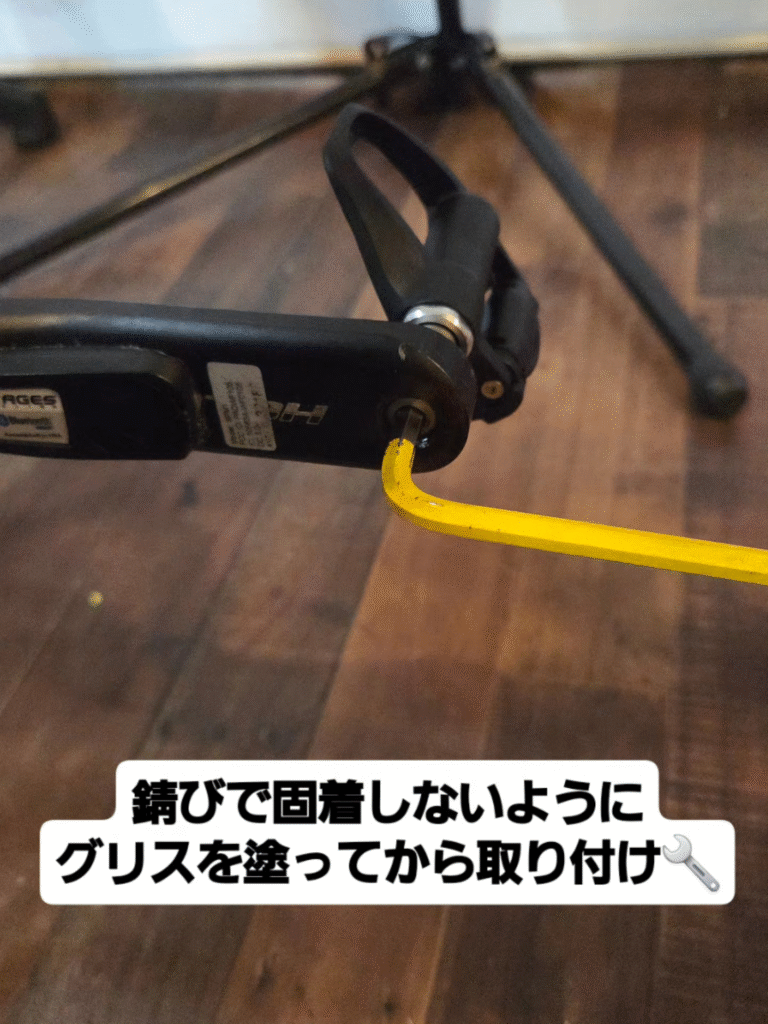 ペダルのネジ山には、固着を防ぐためにMuc-Off(マックオフ)のグリスを塗布してから組み付けました。